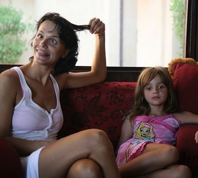 Александра с балующейся мамой