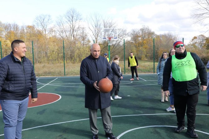 Но первым пунктом его маршрута стало село Яблоново. Здесь в середине лета появилась современная многофункциональная спортивная площадка по программе создания комфортной городской среды. Подобная площадка в 2021 году была установлена в соседнем поселке Лески, у жителей которого появилась прекрасная возможность с комфортом играть в волейбол, баскетбол, мини-футбол, лапту и городки. У яблонцев же на тот момент для занятия физкультурой на свежем воздухе были только уличные тренажеры. И этот объект не простаивал ни зимой, ни летом.